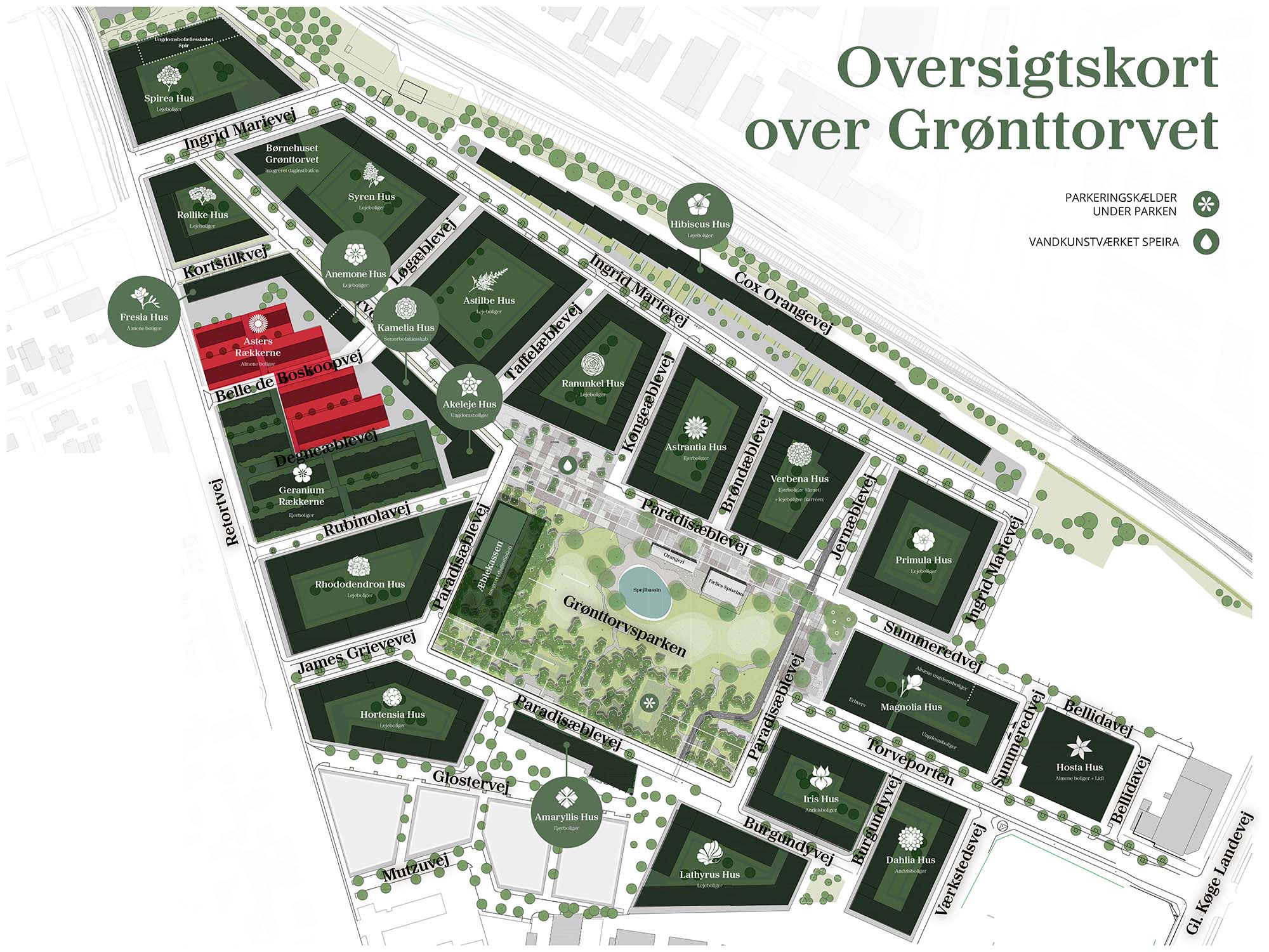 - 25 rækkehuse på adressen Belle de Boskoopvej 1 – 25 og Belle de Boskoopvej 27 – 45