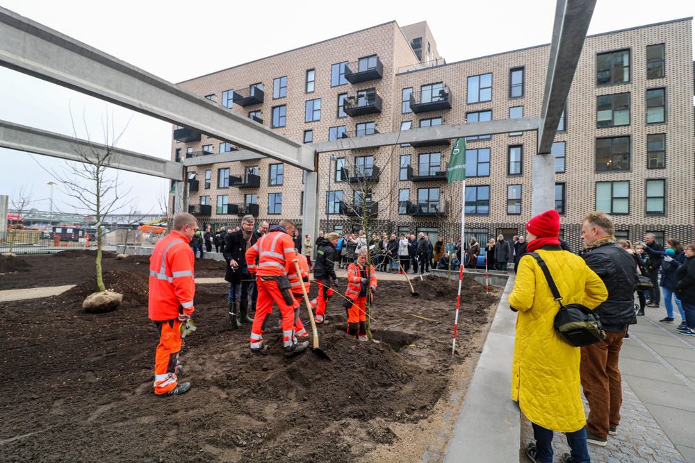 Torsdag den 15. november rundede vi en milepæl på Grønttorvet og kunne plante de første af 250 frugttræer i Grønttorvsparken. De første træ blev plantet af Teknik- og Miljøborgmester Ninna Hedeager Olsen (Ehl), hvorefter formanden for Valby Lokalråd, Michael Fjeldsøe fik lov til at plante det andet. Herefter tog beboerne over, og repræsentanter for hvert af de seks byggerier, som allerede er taget i brug, plantede hver et træ.