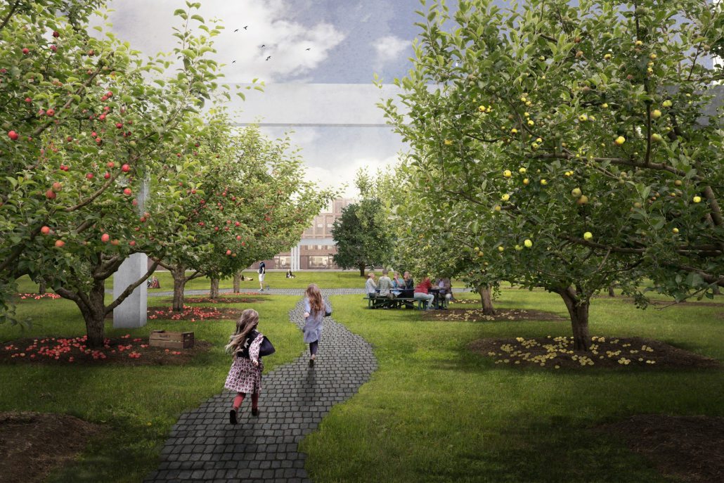 I vinderforslaget har 1:1 Landskab arbejdet med tre strategiske greb: Plantagen, Plænen og Promenaden. Plantagen vil blive beplantet med træer med spiselige frugter til fri benyttelse for områdets beboere og besøgende. Plænen vil være parkens grønne åbne græsflade og tilbyder muligheder for et rekreativt liv med plads til både større aktiviteter og til ro og afslapning. Promenaden er et solrigt urbant strøg, der forbinder park og omkringliggende pladser.